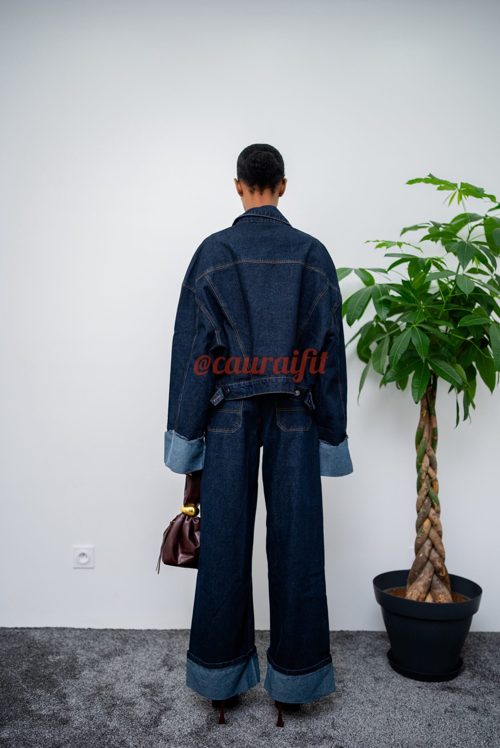 Jean taille haute aux jambes extra larges incarne une esthétique bold et contemporaine. Le revers marqué sur le bas apporte du relief et renforce le caractère graphique de la pièce. Porté avec un simple top près du corps ou en duo avec sa veste oversize coordonnée, il crée une silhouette forte, surtout associé avec nos talons « Coumba » et le sac « Sarrah » stylée et parfaitement dans l’air du temps. Idéal pour celles qui osent les volumes, sans jamais sacrifier l’allure.