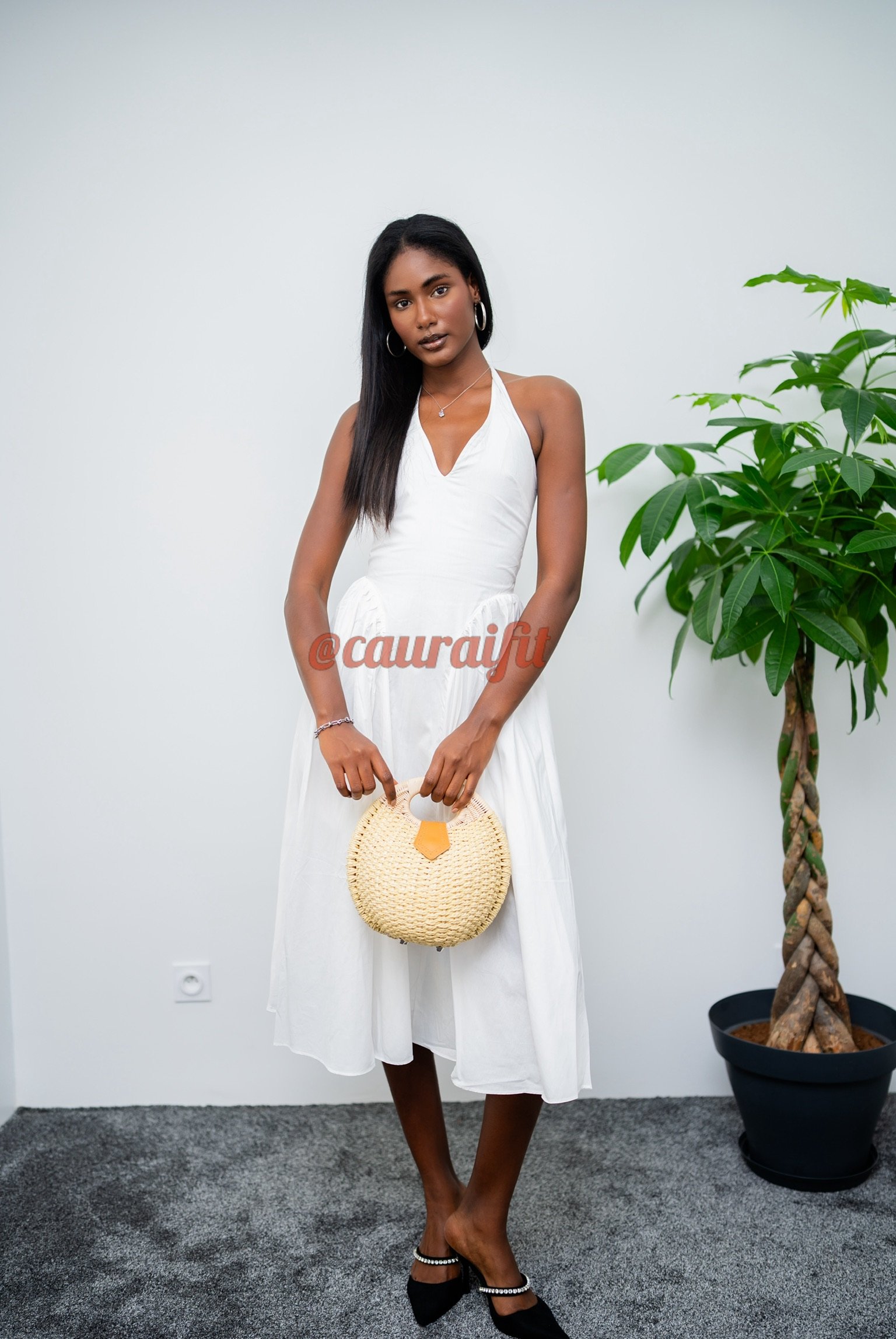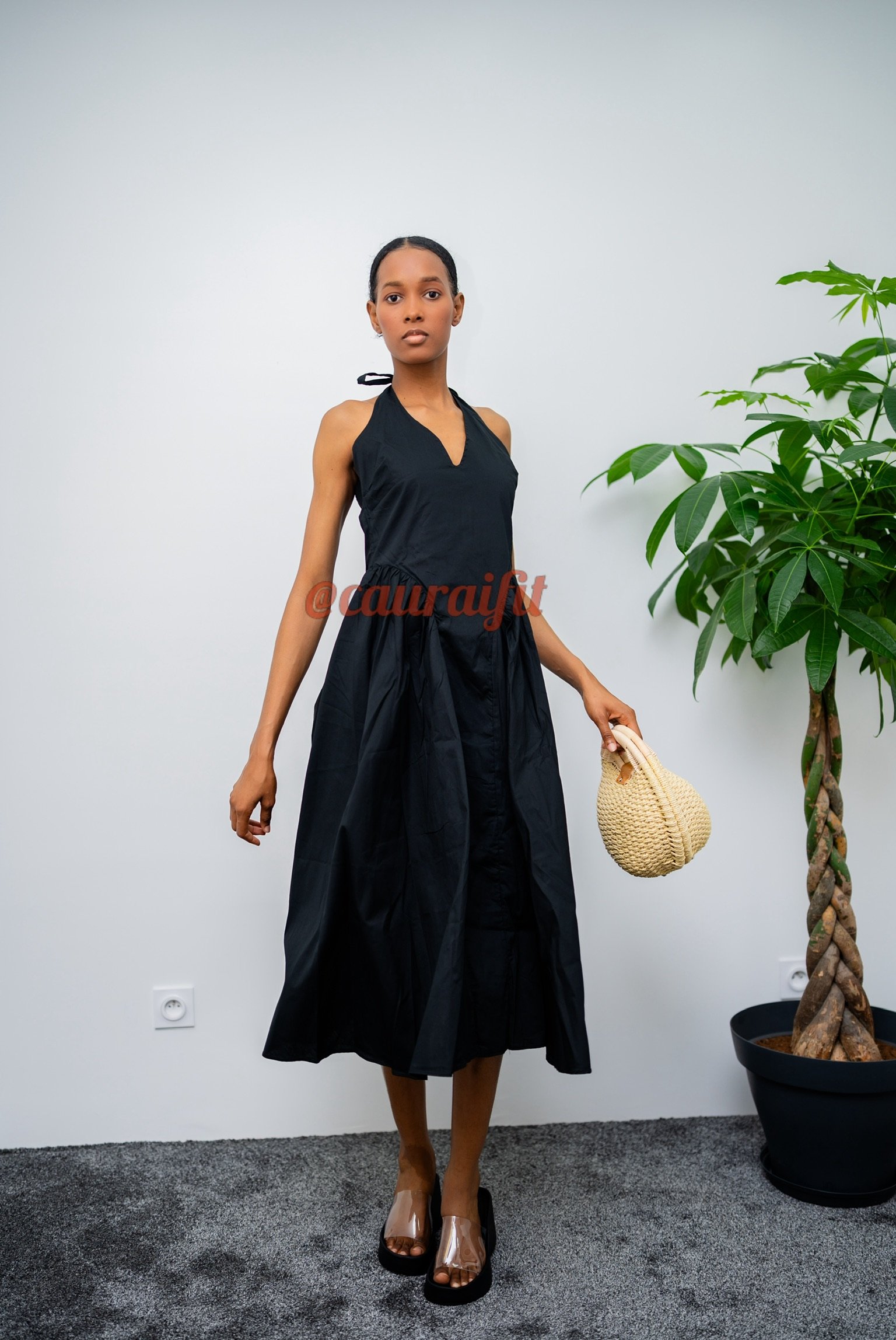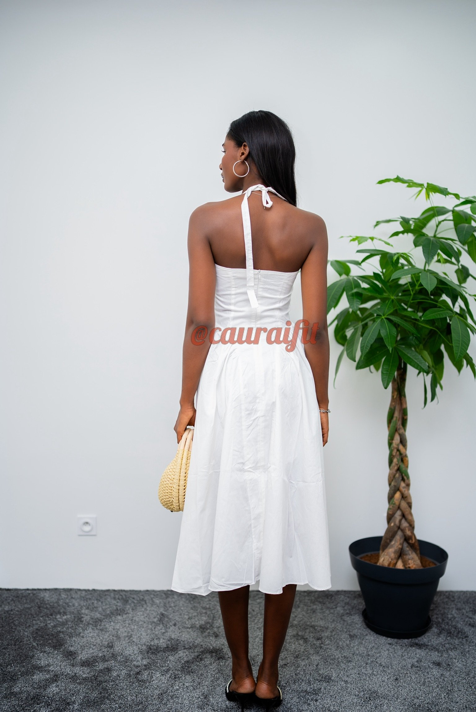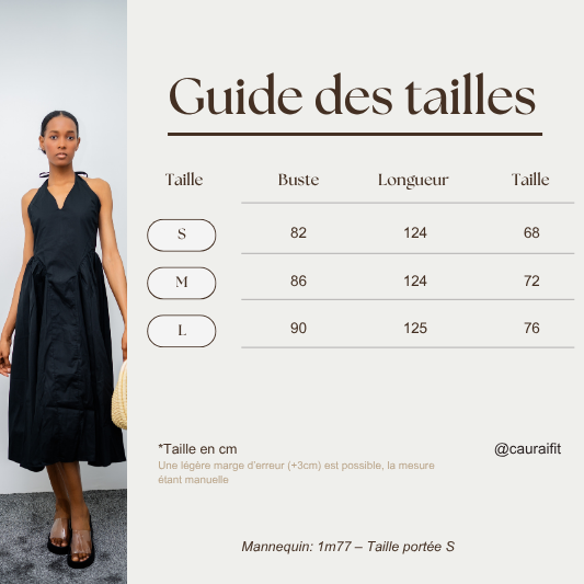 Robe 3/4 en tissu fluide et léger, pensée pour sublimer la silhouette avec naturel. Sa coupe cintrée à la taille met l’accent sur les courbes, tandis que le bas évasé apporte du mouvement et de la légèreté. Le décolleté en V , associé à un lien noué délicatement à la nuque, crée un dos nu sensuel et raffiné. À associer avec nos sandales « Alexandra » : idéale pour les soirées d’été, les événements en plein air ou toute occasion où l’on souhaite se sentir belle et libre.