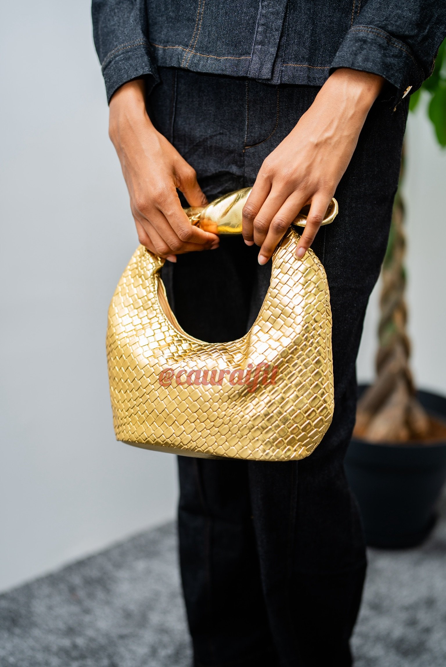 Ce mini sac doré est un bijou à part entière. Sa texture tressée capte la lumière à chaque mouvement, tandis que le petit nœud sur l’anse ajoute une touche délicate et sophistiquée. Un accessoire qui élève instantanément n’importe quelle tenue et te fait briller sans effort, que ce soit en journée stylée ou en soirée chic.