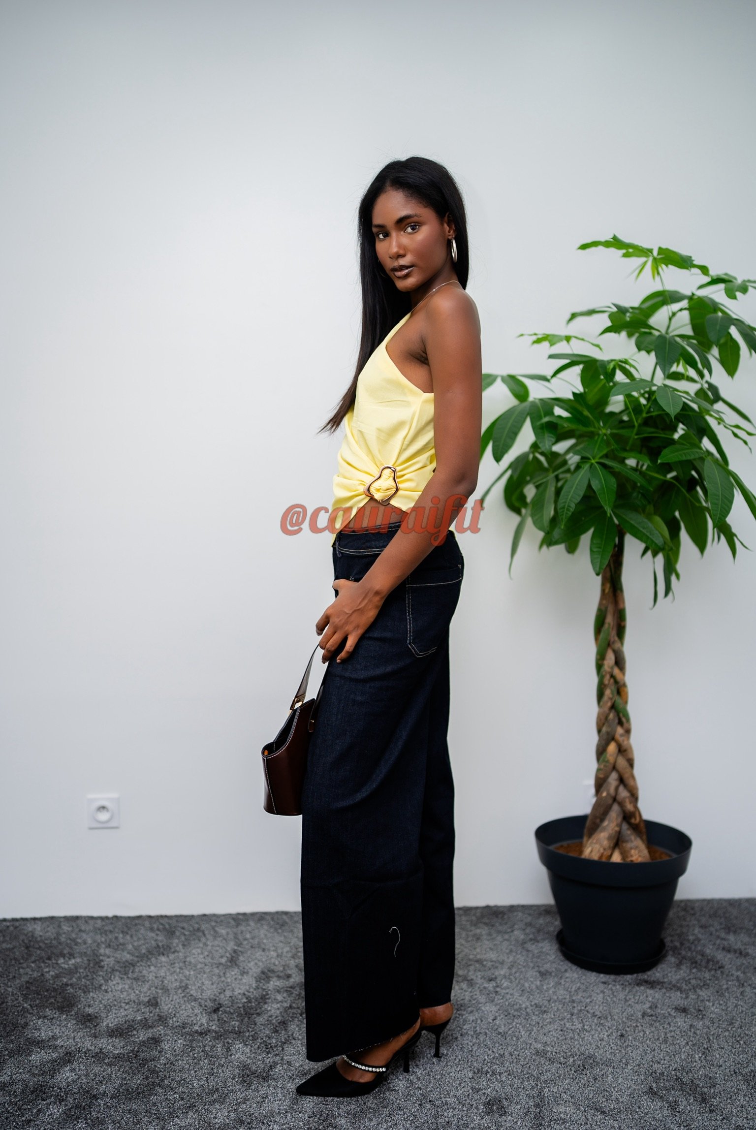Ce top asymétrique apporte une touche solaire et sophistiquée à n’importe quelle tenue. Son jeu de drapés et son attache latérale structurent subtilement le buste, créant un équilibre entre fluidité et style. Parfait avec un pantalon noir comme le jean « Walimata » , une jupe midi ou un short taille haute pour composer un look estival chic et audacieux.